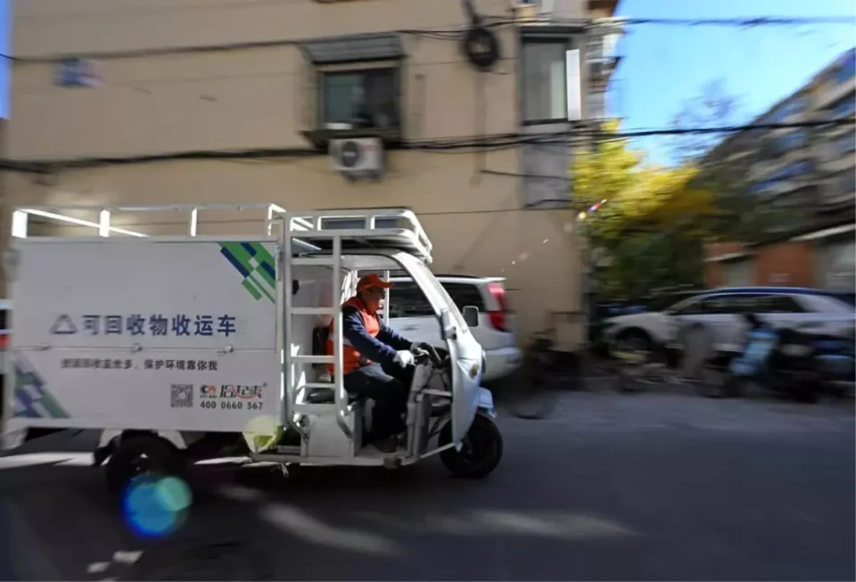 GÖRSEL KAYNAĞI: Çin’in kuzeyindeki Tianjin kentinin Nankai bölgesinde evlerden atık toplayan personel, 3 Kasım 2024. (Fotoğraf: Zhao Zishuo/Xinhua)