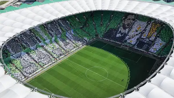 Nesine 2. Lig Kırmızı Grup 33. haftasında şampiyonluk maçına çıkan Bursaspor, sahasında Somaspor’u ağırladı. Atatürk Spor Kompleksi Matlı Stadyumu’nda oynanan kritik karşılaşmaya, yeşil-beyazlı taraftarların tribünlerde sergilediği devasa görsel şölen damga vurdu. Teksas taraftar grubunun organizasyonuyla stadyumun büyük bir bölümünü kaplayan ve yaklaşık 40 bin karton kullanılarak hazırlanan koreografi, futbolseverlere unutulmaz anlar yaşattı.